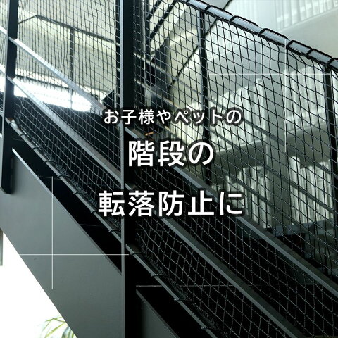 多様な用途で使えるネット -------------------------------------------------- 階段の転落防止用のネットのみならず、ベランダの鳥よけネットや営業後の防犯ネット、ゴルフや野球などの防球ネット、工場の間仕切りネット、集合住宅のゴミネットなど用途は多様です。