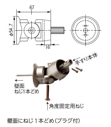 ●材質:アルミ材●付属品:木ねじ(ステンナベ +5.8×50mm)×1本、プラグ(φ8×40mm)×1本 ※ブラケットピッチは900mm以内としてください。