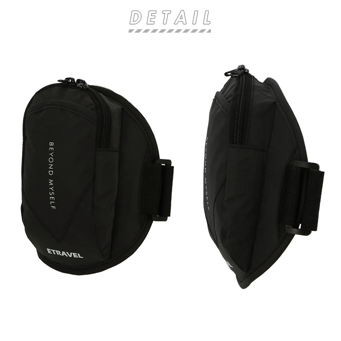 ・マジックテープで長さ調節可能なベルトを穴に通して腕に装着ができる!・スマホを入れるファスナーはダブルジッパー仕様、小物入れにもなる便利ポーチ。